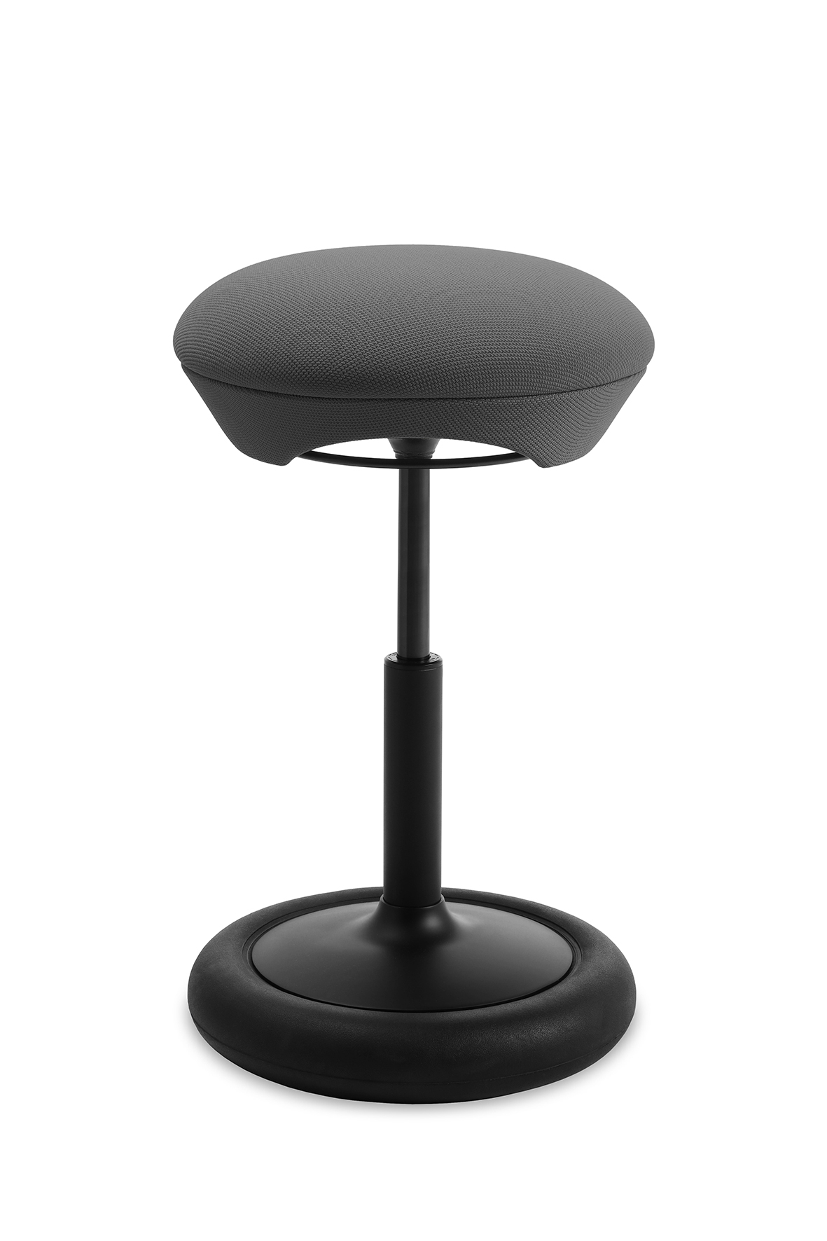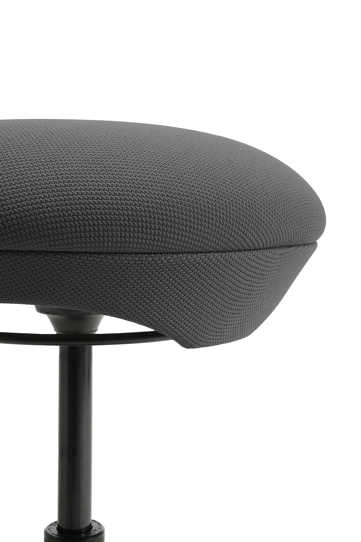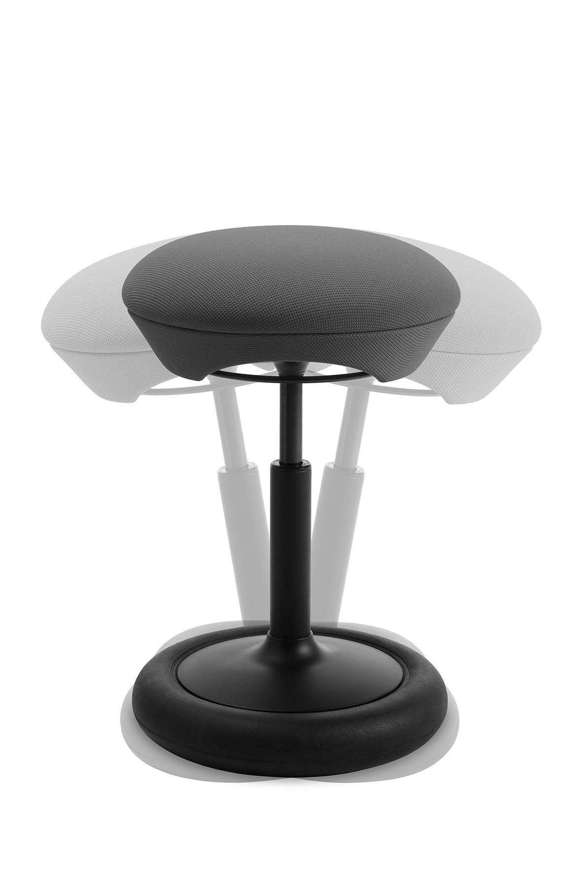 Der Sitness Hop verfügt über ein bewegliches Reifenelement am Standfuß, das einen horizontalen Schwingeffekt erzeugt. Dadurch passt sich der Hocker jeder Bewegung an und unterstützt ein dynamisches, gesundes Sitzen.