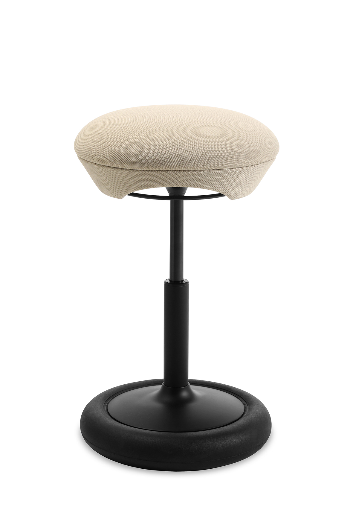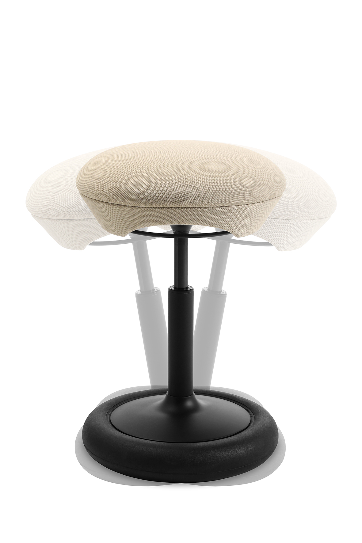 Der Sitness Hop verfügt über ein bewegliches Reifenelement am Standfuß, das einen horizontalen Schwingeffekt erzeugt. Dadurch passt sich der Hocker jeder Bewegung an und unterstützt ein dynamisches, gesundes Sitzen.