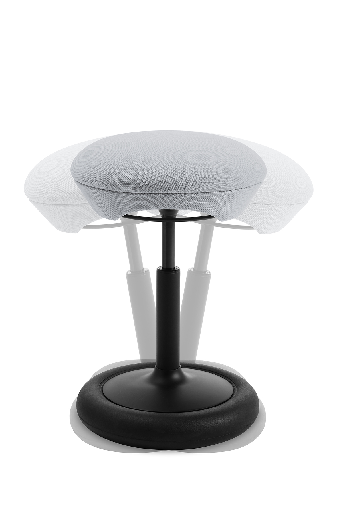 Der Sitness Hop verfügt über ein bewegliches Reifenelement am Standfuß, das einen horizontalen Schwingeffekt erzeugt. Dadurch passt sich der Hocker jeder Bewegung an und unterstützt ein dynamisches, gesundes Sitzen.