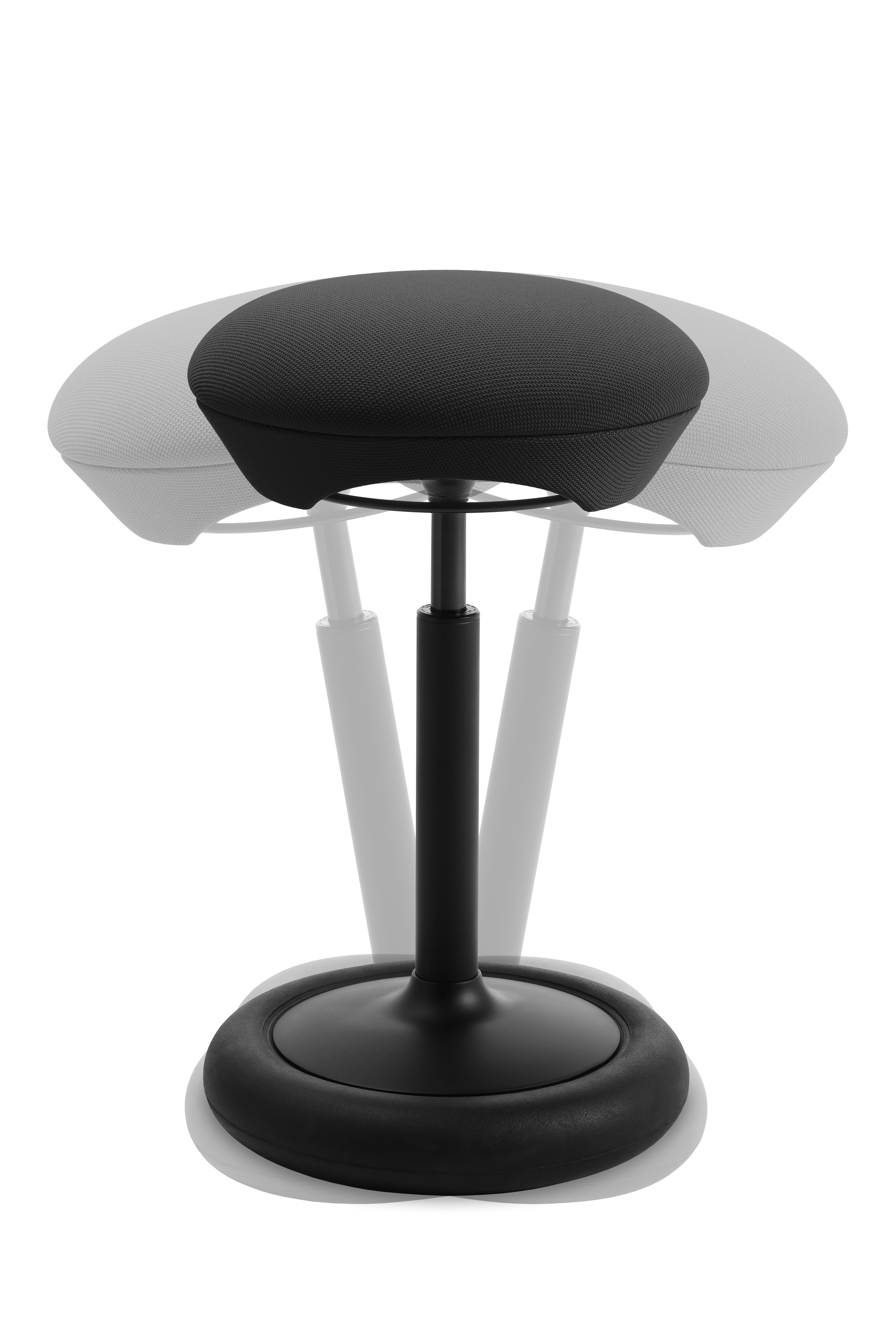 Der Sitness Hop verfügt über ein bewegliches Reifenelement am Standfuß, das einen horizontalen Schwingeffekt erzeugt. Dadurch passt sich der Hocker jeder Bewegung an und unterstützt ein dynamisches, gesundes Sitzen.